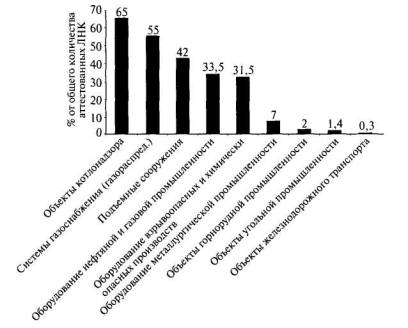 Рис. 5.2. Распределение аттестованных специалистов неразрушающего контроля (НК) по объектам контроля (отраслям надзора)