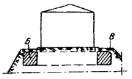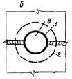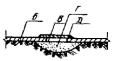 Карта 2.11. Дефект Центральная опорная стойка поднялась и вырвала часть днища. Основание пропитано нефтепродуктами. Метод исправления 1. Расчищают дефектное место, устанавливают и размещают границу дефектного участка, подлежащего удалению. 2. По разметке высверливают ручной дрелью (пневмозубилом) под слоем технического вазелина дефектное место. 3. Под днище подбивают глиняный замок, отстоящий от кромок дефектного места более на 200 мм. Толщина глиняного замка должна быть не менее 150 мм. 4. Обрабатывают и зачищают от задиров кромки днища. 5. Подгоняют внахлестку на 50 - 100 мм накладку из металла толщиной, равной толщине днища. 6. Накладку сваривают с днищем. 7. Герметичность сварных соединений отремонтированного участка проверяют вакуум-методом.