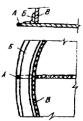До сварки стенки с днищем окраек соединяют с днищем на прихватках. После сварки стенки с днищем заваривают швы, соединяющие окраек с днищем.