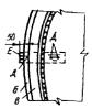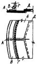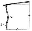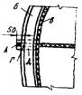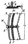 Карта 4.6 Дефект Местная потеря устойчивости (вмятины) торовой части кровли Трещин в зонах прогиба нет. Метод исправления 1. Устанавливают границы вмятин торовой части. 2. Подгоняют внахлестку накладку с закругленными углами толщиной, равной толщине металла торовой части. 3. В средней части накладки сверлят отверстие диаметром 8 - 10 мм и нарезают резьбу для постановки болта. 4. Накладку по наружному контуру сваривают с кровлей. 5. По окончании работ в отверстие устанавливают болт. Карта 4.7. Дефект Местная потеря устойчивости (вмятины) торовой части кровли. В зонах перегиба имеются трещины. Метод исправления 1. Устанавливают границы дефектного места. 2. Дефектное место вырезают и на его место подгоняют встык свальцованный элемент и сваривают. 3. Толщина вставленного элемента должна быть равна толщине вырезанного. 4. Герметичность сварных соединений проверяют вакуум-методом.