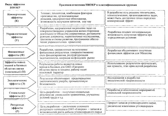 Рис. 1. Классификация НИОКР по виду эффектов, подлежащих учету, во «Внутрикорпоративных правилах оценки эффективности НИОКР»