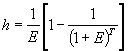 где В - годовая выручка от реализации продукции4; С - годовые расходы на производство и реализацию продукции (без учета амортизации по основным фондам, затраты по которым учтены в составе капитальных вложений); Т - срок использования внедряемых нововведений (срок службы основных фондов, вводимых в эксплуатацию по программе внедрения), годы; i - ставка налога на имущество; п - ставка налога на прибыль. 3 Рассчитывается исходя из прироста объемов производимой продукции и цен ее реализации. Из цены реализации продукции при этом исключаются НДС, акцизы, таможенные пошлины и сборы, а также (для добываемых полезных ископаемых) налог на добычу полезных ископаемых. 4 Рассчитывается исходя из обусловленного внедрением инновации прироста объемов производимой продукции и цен ее реализации (без НДС, акцизов, таможенных пошлин и сборов и налога на добычу полезных ископаемых). 6. Коэффициент h приведения годовых эффектов нововведений к интегральному эффекту рассчитывается в зависимости от срока использования внедряемых нововведений (T) по формуле: