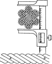 Рис. 1.3. Схема измерения диаметра и шага свивки каната 1.1. Число обрывов проволок на одном шаге каната различной свивки в зависимости от первоначального коэффициента запаса прочности, при котором канат должен быть выбракован