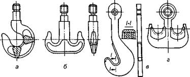 Рис. 1.6. Грузовые крюки: Крюки изготавливают ковкой или штамповкой из низкоуглеродистой стали 20 (реже из стали 20 Г). После ковки или штамповки проводят нормализацию для снятия внутренних напряжений. Для предотвращения самопроизвольного выпадания грузозахватного приспособления крюки оборудуют предохранительными замками (рис. 1.7).