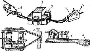 При выполнении монтажных работ лебедки должны быть закреплены от смещения. Для этого используют элементы строительных сооружений: колонны (рис. 1.21), ригеля, стены или специальные анкерные устройства - якоря.