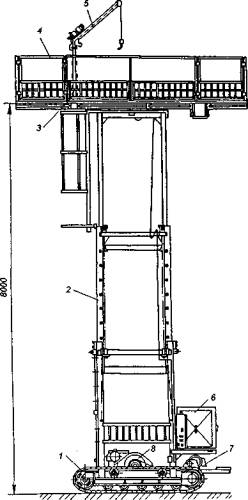Примечания. 1. Грузоподъемность кранов: однобалочных 3,2-8 т, двухбалочных 12,5 и 20 т для всех указанных в таблице пролетов (за исключением однобалочных, для которых пролеты 13,5 и 16,5 м имеют только краны грузоподъемностью 5 и 8 т). 2. Данные приведены для наименьшей и наибольшей грузоподъемности крана: промежуточные параметры необходимо уточнять по паспорту крана. 3. Минимальное расстояние от верха тележки до фермы 100 мм. 1.18. Техническая характеристика монтажных мачт