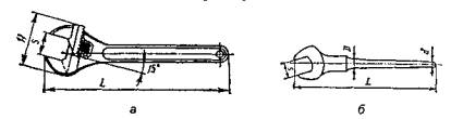 Рис. 1.37. Ключи гаечные торцовые односторонние и двусторонние Гаечные разводные ключи (рис. 1.38а) выпускают по ГОСТ 7275 с наибольшим гарантируемым раскрытием губок (S) 12, 19, 24, 30, 36 и 46 мм. Ключи гаечные роликовые монтажные (рис. 1.38б) предназначены для сборки резьбовых соединений и совмещения за счет роликовой ручки отверстий в соединяемых деталях и сборочных единицах. Их выпускают с зевом размером 17-36 мм.