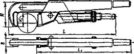 Рис. 1.10. Клещевые захваты Стропы - это съемное приспособление, изготовленное из каната или цепи, соединенное в кольцо или снабженное подвесами для подвешивания оборудования к крюку грузоподъемной машины. Стропы грузовые канатные выпускают следующих типов: УСК-1 -универсальный, исполнение 1; УСК-2 - универсальный, исполнение 2; 1СК - одноветвевой; 2СК - двухветвевой; 3СК - трехветвевой; 4СК - четырехветвевой. Стропы типа УСК в первом и втором исполнениях показаны на рис. 1.11.