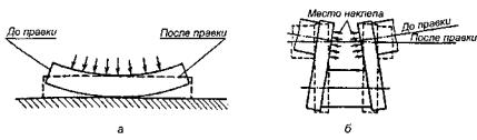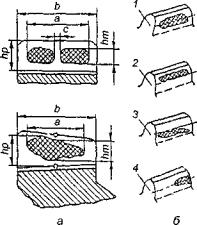 где d - наружный диаметр пробки, мм; d1 - наружный диаметр резьбы болта, мм; dd - предел прочности материала болта, МПа; dk - предел прочности материала корпуса (ремонтируемой детали), МПа. Этот способ неприменим в тонкостенных деталях, малопроизводителен. В последние годы для ремонта резьбовых отверстий разработан и применяется способ установки резьбовых спиральных вставок. Вставку изготавливают в виде пружинящей спирали из нержавеющей проволоки Х18М10Т ромбического сечения с острым углом 60°. Наружная и внутренняя поверхности вставки представляют собой метрическую резьбу разных размеров (М10 и М8, М12 и М10 и т.д.). На одном конце вставки имеется технологический поводок, с помощью которого специальным ключом ее ввертывают в отверстие. Затем этот поводок удаляют специальным бородком. Технология заключается в рассверливании изношенного отверстия и нарезании в нем с тем же шагом резьбы размером М8хМ10, M10хМ12 и т.д.), в завертывании спиральной вставки и удалении технологического поводка. Для восстановления резьбовых отверстий серийно выпускается комплект ОР-5526, в который входят необходимые инструменты и спиральные вставки. Этот способ прост и доступен в любых условиях; позволяет восстанавливать резьбовые отверстия до нормального размера в любых деталях, в том числе тонкостенных; обладает высокой производительностью и низкой себестоимостью; повышает прочность и стабильность резьбовых соединений. Высокая износостойкость вставки и значительное улучшение за счет нее равномерности распределения нагрузки по виткам резьбы повышают срок службы восстановленных отверстий в 2 раза и более по сравнению с новыми отверстиями. Восстановление шпоночных пазов и шлицев. У шпоночных пазов изнашиваются боковые грани. При небольшом их износе пазы фрезеруют до выведения следов износа. Допускается увеличение ширины паза на 15%. В этом случае в сопрягаемой детали также увеличивают ширину шпоночной канавки и при сборке устанавливают шпонку ремонтного размера. Иногда шпоночный паз сопряженной детали не обрабатывают, а устанавливают ступенчатую шпонку. Если шпоночный паз невозможно восстановить обработкой под ремонтный размер, то его заваривают и фрезеруют паз номинального размера на новом месте. Однако менять положение паза на валу нельзя, если шпонка служит одновременно и для фиксации сопрягаемой детали в строго заданном положении (например, шпоночный паз распределительного вала). Шлицы изнашиваются преимущественно по боковой поверхности. У шлицевых валов, центрируемых по наружному диаметру, изнашивается также и эта поверхность. Изношенные шлицы восстанавливают следующими способами: 1) Ручной или механизированной дуговой наплавкой. 2) Пластическим деформированием. 3) Электроконтактной наплавкой с одновременной осадкой (комбинированный способ). 4) Заменой шлицевой части детали. Широко применяют дуговую наплавку шлицев. Ручная наплавка малопроизводительна, поэтому чаще используют механизированную наплавку в среде углекислого газа, под флюсом, вибродуговую наплавку. Наплавку выполняют продольными валиками или по винтовой линии. При продольной наплавке шлицев шириной до 5-6 мм впадину полностью заплавляют, а у крупных шлицев наплавляют только изношенную сторону шлица. Чтобы уменьшить деформацию вала при продольной наплавке, валики укладыв
