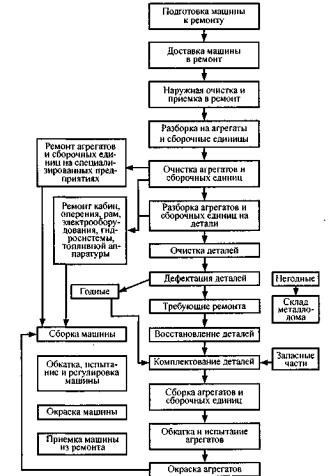 Для определения сроков осмотров необходимо знать структуру межосмотровых периодов. Межосмотровым периодом называют продолжительность работы оборудования между двумя очередными плановыми осмотрами или между очередным ремонтом и осмотром. Структура проведения осмотров в определенной последовательности зависит от конструктивных особенностей оборудования (агрегата). Например, для линии обработки кишок крупного рогатого скота К 6.ФЛК последовательность осмотров (о) за период между капитальными ремонтами следующая: -о-о-о-о-о-т-о-о-о-о-о-с-о-о-о-о-о-т-о-о-о-о-о-к. Зарубежное оборудование для переработки сельскохозяйственной продукции, поступающее на российский рынок, имеет некоторые отличия в видах и периодичности технического обслуживания. Например, фирма «Alfa-Laval» в систему профилактического обслуживания выпускаемых сепараторов включает промежуточное, основное и ремонтное. Промежуточное обслуживание (профилактические осмотры в планово-предупредительной системе технического обслуживания и ремонта) проводят через каждые три месяца, основное (средний ремонт) - через три промежуточных обслуживания или приблизительно один раз в год. Ремонтное обслуживание (капитальный ремонт) обычно проводят через пять лет. 2.4. Технология технического обслуживания оборудованияСодержание и технология технического обслуживания изложены в руководствах по эксплуатации конкретной машины и оборудования. При межремонтном обслуживании оборудование, соприкасающееся с пищевыми продуктами и работающее в условиях большой загрязненности или запыленности, очищают. К такому оборудованию относят, прежде всего, центрифуги, волчки, шприцы, куттеры, дробилки, мельницы и др. Основные рабочие органы агрегата разбирают, очищают от грязи, крови, волоса, щетины, фарша, жира и других загрязнений, протирают, смазывают и собирают. После каждой рабочей смены производят санитарную обработку некоторого оборудования. Профилактическую дезинфекцию проводят с целью предупреждения возникновения инфекционных заболеваний. Применяют механические, физические, биологические и химические методы. К механическим относят очистку поверхности механическим путем или смыванием загрязнений. К физическим методам относится обработка поверхностей оборудования горячей водой, кипячением, паром, пастеризацией, ультрафиолетовыми лучами, ультразвуком и др. Биологические способы дезинфекции основаны на естественно протекающих во внешней среде биологических процессах. По этому принципу работают, например, биотермические камеры, в которых происходит распад обеззараживаемого материала. К биологическому способу обеззараживания относятся также и естественные процессы самоочищения внешней среды, например, воды от патогенных микроорганизмов. Эти способы широко используют при очистке сточных вод. Химические способы дезинфекции основаны на использовании различных химических средств, обладающих дезинфицирующим действием. Они существуют в различных состояниях: газообразном (хлор, сернистый газ и др.), жидком (растворы кислот и щелочей и т.д.), твердом (хлорная известь, хлорамин и пр.). В практике дезинфекции чаще всего используют растворы различных препаратов: "Вимол", "Агросил-П", "Сконвел", "Катрил-Д" и др. На мясоперерабатывающих предприятиях применяют препарат нового поколения