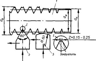 Восстановление типовых поверхностей деталей Восстановление резьбы. Свыше 60% деталей любой машины имеют резьбу, которая при эксплуатации машин изнашивается, витки сминаются, деформируются и срываются. Причем, изнашиванию и повреждениям подвергаются прежде всего резьбовые отверстия. Незначительные ее повреждения (смятие, деформации отдельных витков) устраняются калибровкой метчиком или плашкой. При срыве более двух ниток и других серьезных повреждениях применяют в зависимости от конструкции детали, типа резьбы (наружная или внутренняя) и т.д. различные методы восстановления резьбы. Наружную резьбу (на валах, осях и т.д.) восстанавливают следующими способами: 1) Нарезанием резьбы ремонтного размера. 2) Наплавкой и нарезанием резьбы нормального размера. 3) Контактной приваркой наварной проволоки. 4) Заменой изношенной резьбовой части детали. В первом случае старую резьбу срезают на токарном станке и нарезают новую меньшего размера, например, вместо М16 нарезают Ml4. Это простой, доступный и дешевый способ. Однако он имеет серьезные недостатки: потребность в замене или ремонте сопряженной детали, нарушение взаимозаменяемости деталей соединения и уменьшение его прочности. Для восстановления резьбы до нормального размера широко применяется механизированная наплавка (чаще вибродуговая в среде СО2, реже - под флюсом в среде пара). Перед наплавкой старую резьбу срезают. После наплавки деталь протачивают и нарезают резьбу нормального размера. Припуск на обтачивание должен составлять 2-3 мм на сторону. Наплавка резьбы, как правило, оказывает нежелательное термическое воздействие на соседние закаленные участки детали (шейка под подшипник, шлицы и др.), затруднена на валах малых диаметров. Этих недостатков лишен способ восстановления резьбы электроконтактной приваркой проволоки.) Сущность его заключается в том, что сварочную проволоку (типа Св-08) диаметром, равным шагу резьбы, укладывают между витками очищенной резьбы, зажимают проволоку и деталь между роликами сварочной машины и приваривают проволоку по винтовой линии. После этого деталь обтачивают и нарезают резьбу нормального размера. Иногда конец детали с изношенной резьбой отрезают, изготовляют новую часть детали, которую свертывают или сваривают с оставшейся частью. Затем нарезают резьбу нормального размера. При большом диаметре резьбы иногда ее не отрезают, а обтачивают, затем напрессовывают кольцо и нарезают резьбу нормального размера. Этот способ трудоемкий и поэтому применяется для восстановления резьбы на крупных дорогих валах, когда другие способы нельзя применить (например, изношена резьба ремонтного размера, а наплавлять ее нет возможности). Внутреннюю резьбу восстанавливают чаще всего в корпусных и других базисных деталях, изготовленных из чугуна, алюминиевых и других сплавов. Независимо от материала деталей характер износа резьбовых отверстий одинаков: небольшой износ и срывы имеют первые два-три витка резьбы, остальные изнашиваются значительно меньше. Это объясняется различной нагрузкой на витки резьбового соединения: первый виток нагружен в пять-шесть раз больше последнего. Внутреннюю резьбу восстанавливают следующими способами: 1) Нарезанием резьбы ремонтного размера. 2) Нарезанием резьбы нормального размера на новом месте. 3) Заваркой отверстия и п