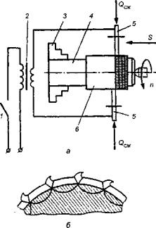 Рис. 4.25. Дефекты ножей куттеров Затупление режущей кромки вызывает возрастание силового воздействия на нож. Это связано, прежде всего, с тем, что нож кут-тера начинает не резать, а сминать измельчаемый продукт. В результате перед режущей кромкой скапливается плотная масса деформированного мяса, которая снижает производительность куттеpa, повышает температуру фарша и ухудшает его качество. Поддерживают требуемую остроту режущих кромок ножей ежесменной перезаточкой. При образовании сколов и трещин ножи куттеров выбраковывают. Износ посадочного отверстия ножа влечет за собой дисбаланс ножевого вала и, как следствие, повышенные нагрузки на подшипники. Кроме того, нарушается зазор между ножом и чашей, что увеличивает время куттерования и ухудшает качество фарша. При износах посадочного отверстия ножи куттеров выбраковывают. Основной недостаток существующих конструкций режущих органов, в том числе ножей-куттеров, - их низкая ремонтопригодность. Восстановление режущих свойств заключается лишь в слесарно-механической обработке режущей кромки, поэтому при изготовлении и восстановлении режущего инструмента для оборудования по переработке сельскохозяйственной продукции большое внимание уделяют его упрочнению. Одним из способов упрочнения режущих инструментов является поверхностное пластическое деформирование. Обработка наклепом применяется для упрочнения ленточных и дисковых пил. Вначале пилы подвергают ступенчатой или изотермической обработке, после чего осуществляют отпуск на твердость HRC = 45-50, затем для дополнительного упрочнения накатывают роликами. Для этого осуществляют чеканку зубьев (вручную или на полуавтоматических станках) и плющение вершин зубьев пил, что одновременно с повышением износостойкости инструмента позволяет исключить операцию развода зубьев. Эффективно применение алмазного выглаживания для упрочнения инструмента с твердостью до HRC = 65. Этот универсальный метод может заменить операции окончательного шлифования, полирования, доводки и суперфиниширования. Обработку выполняют специальными инструментами - выглаживателями, оснащенными сфероидальными, трапециевидными или конусообразными деформирующими элементами, изготовленными из синтетических сверхтвердых материалов: эльбора, гексанита, композита и. др. Износостойкость выглаженной поверхности в 2-3 раза выше шлифованной и на 20-40% - полированной. Наиболее эффективно применение алмазного выглаживания в случае предварительного нанесения износостойких хромовых покрытий на режущую часть инструмента. При этом улучшается сцепление покрытия с основным материалом, повышается усталостная прочность инструмента. Практика упрочнения деталей показывает целесообразность применения криогенной обработки для цементированных и азотированных инструментов. Режим криогенной обработки сталей с насыщенным поверхностным слоем аналогичен принятому для углеродистых или легированных инструментальных сталей с таким же содержанием углерода и легирующих примесей, как и в поверхностном слое. В качестве источников умеренного холода (до -70°С) при обработке инструментов используют аммиачные и фреоновые установки, для получения температуры до -135°С - криогенные. Могут также применяться криогенные аппараты, в которых криогентами служат твердая углек