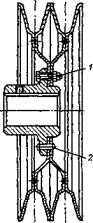 на вал: Сборка после ремонта составного шкива (рис. 4.48) заключается в правильном соединении обода со ступицей посредством резьбовых деталей или заклепок. Перед установкой на вал составной шкив нужно обязательно проверить на биение.