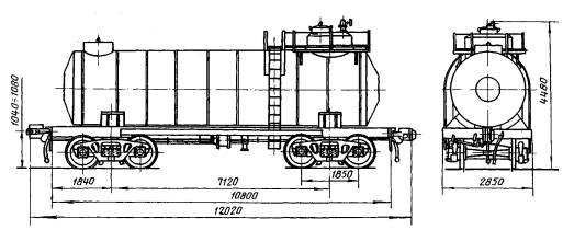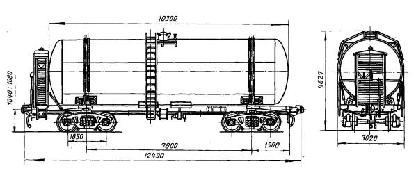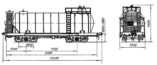 Рис. 4.12. Четырехосная цистерна для ядохимикатов модели 15-1432
