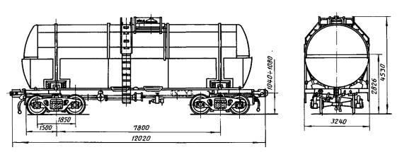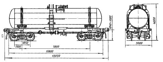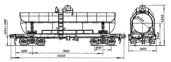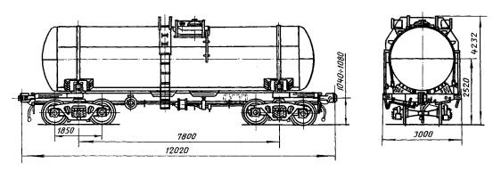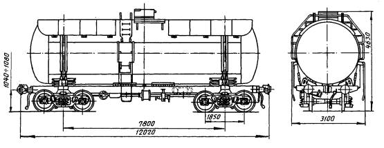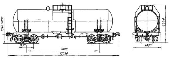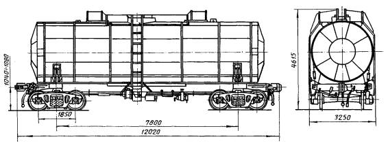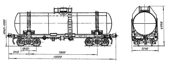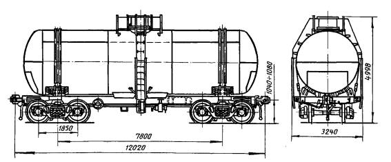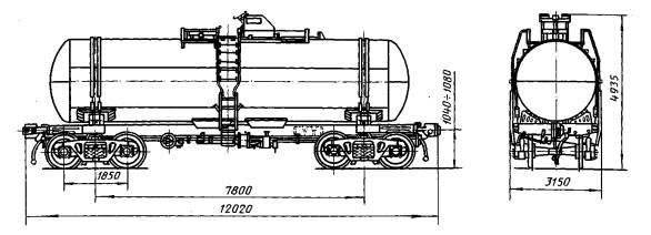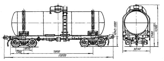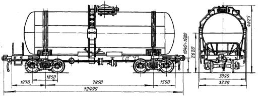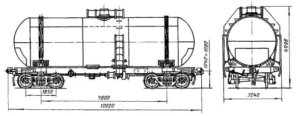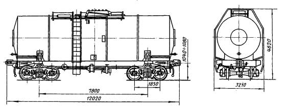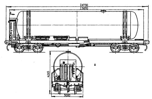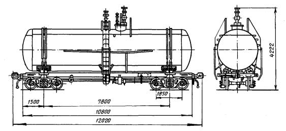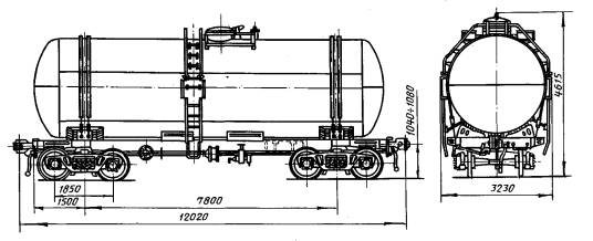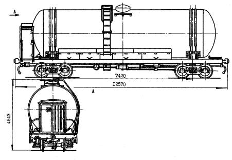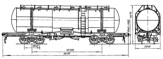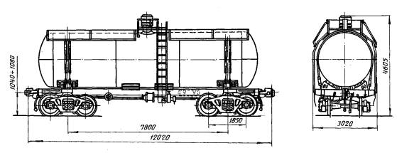 Рис. 4.6. Четырехосная цистерна для олеума модели 15-Ц856