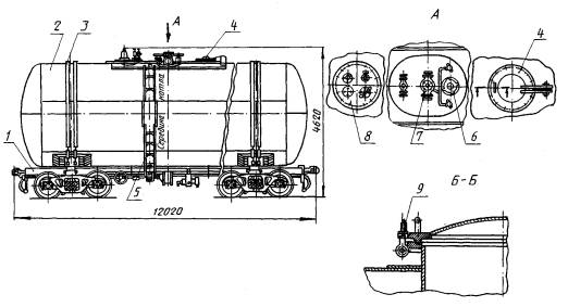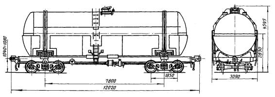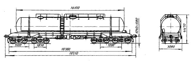 Рис. 5.9. Четырехосная цистерна для аммиака модели 15-1619