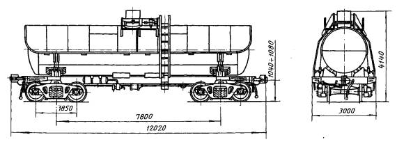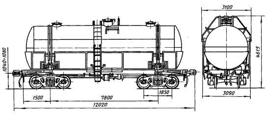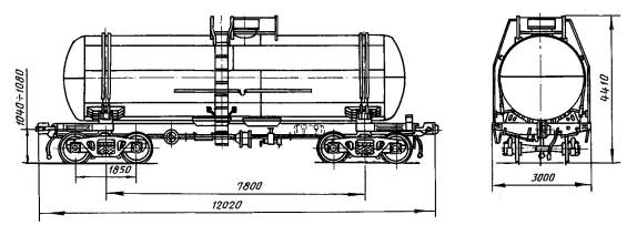 Рис. 3.4. Четырехосная цистерна для бензина и нефти модели 15-Ц863