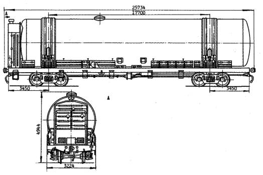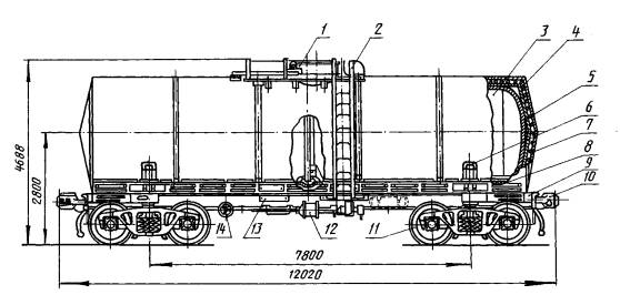 Рис. 4.1. Четырехосная цистерна для олеума модели 15-1424