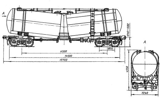 Рис. 4.10. Четырехосная цистерна для вязких нефтепродуктов модели 15-1566