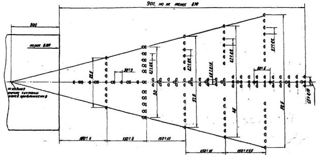 Рис. 3. Схема размещения огней приближения по центральному ряду (ОВИ-1):