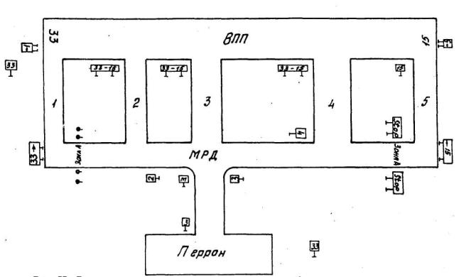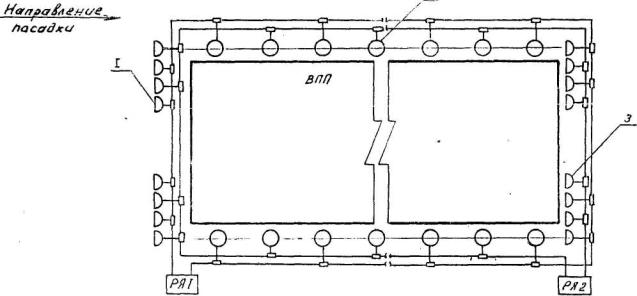 Рис. 1. Схема расположения светосигнального оборудования системы ОМИ для полетов по ПВП: