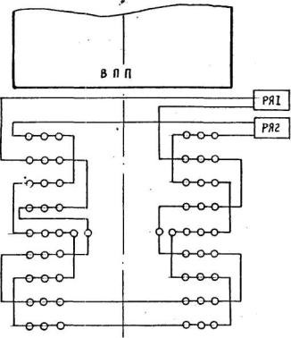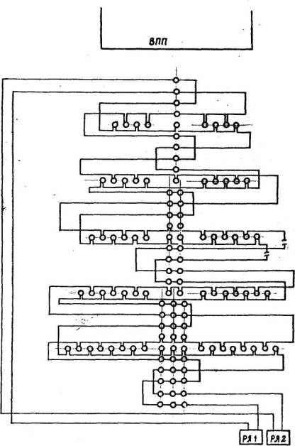 Рис. 14. Схема электропитания огней зоны приземления систем ОВИ-2 со световыми горизонтами