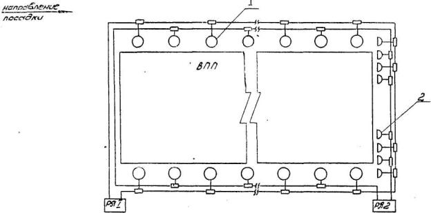 посадочных и ограничительных огней прожекторного типа систем ОВИ-2, ОВИ-3: Примечание. Входные и ограничительные огни второго направления условно не показаны.