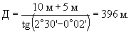 Схема расположения огней системы PAPJ и распределение углов возвышения огней (угол захода на посадку 2º40' Минимальная высота уровня глаз пилота над порогом, на которой пилот еще видит указание "глиссада" (нижняя граница индикации "на глиссаде"), обеспечивается углом возвышения огня № 2 (угол В). Для расчета Д1 величина указанного угла берется на 2' дуги меньше, например, 2°28' вместо 2°30'. Расстояние Д1 должно быть рассчитано таким образом, чтобы наименьшая высота над порогом, на которой пилот будет наблюдать указание правильной траектории захода на посадку, обеспечивала требуемую минимальную высоту колес над порогом наиболее критичного воздушного судна. Расчет удаления глиссадных огней от порога ВПП (Д1) производится при условии отсутствия продольного уклона ВПП и установки глиссадных огней на одном уровне с примыкающей к огням оси ВПП, т.е., высота уровня порога и глиссадных огней одинакова. В этом случае величина Д1 вычисляется путем прибавления высоты уровня глаз пилота над колесами для наиболее критичного воздушного судна к требуемой минимальной высоте колес над порогом и деления полученной суммы на тангенс угла возвышения минус 2' огня № 2. Пример I Высота уровня порога и глиссадных огней одинакова. Угол захода на посадку................... 2°40 Угол возвышения огня № 2................. 2°30 Требуемая минимальная высота колес над порогом для наиболее критичного воздушного судна, совершающего посадку на данную ВПП............................ 10 м Высота уровня глаз пилота над колесами для наиболее критичного воздушного судна.................................... 5 м Расстояние глиссадных огней от порога ВПП