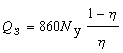 где Qд - количество выделяемого тепла в помещении ДЭС, ккал/ч; с - теплоемкость воздуха, принимаемая 0,24 ккал/(кг×°С); g - объемный вес воздуха, принимаемый 1,2 кг/м3; tв - температура воздуха в помещении ДЭС, принимаемая 40°С; tн - расчетная среднемесячная температура наружного воздуха самого жаркого месяца при вентиляции помещения ДЭС наружным воздухом или температура воздуха в основных помещениях убежища при вентиляции перетекающим воздухом. При определении производительности вентиляционной системы для режима фильтровентиляции в ДЭС воздухом, перетекающим из убежища, следует учитывать тепло, поглощаемое ограждающими конструкциями. При вентиляции помещения ДЭС наружным воздухом и при применении воздухоохлаждающих установок поглощение тепла ограждающими конструкциями не учитывается. 7.25. Количество тепла, поступающего в помещение ДЭС от дизеля Qдз, ккал/ч, следует определять по формуле Qдз = КтNэВb, (50) где Кт - коэффициент, учитывающий количество выделяемого дизелем тепла, принимается при водовоздушной (радиаторной) системе охлаждения равным 0,35, при водо-водяной - 0,08; Nэ - эффективная мощность дизеля, л.с.; В - теплотворная способность топлива, ккал/кг; b - удельный расход топлива, кг/(л.с×ч). Примечание. При отсутствии точных данных допускается принимать В = 10000 ккал/кг, b = 0,19 кг/(л.с×ч). 7.26*. Тепловыделения Qэ, ккал/ч, поступающие в помещение ДЭС от генератора и электродвигателей, определяются по формуле