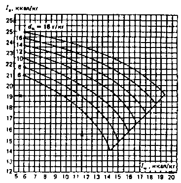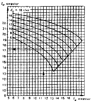 Нормативы количества подаваемого воздуха (см. табл. 34*) допускается использовать при типовом проектировании. При привязке типовых проектов и разработке индивидуальных проектов количество подаваемого в убежище воздуха при режиме IL, м3/ч, необходимо определять по формуле где Qт - количество выделяющегося в убежище тепла (от людей, электрического освещения, электросилового оборудования), ккал/ч; Iн - теплосодержание наружного воздуха, соответствующее среднемесячной температуре и влажности самого жаркого месяца, ккал/кг; Iв - теплосодержание внутреннего воздуха, соответствующее допустимым сочетаниям температуры и влажности воздуха, ккал/кг (определяется по графикам прил. 9* и 10* в зависимости от расчетных теплосодержания Iн, влагосодержания dн наружного воздуха - по I - d диаграмме - и климатической зоны). Количество воздуха, подаваемого в убежища для нетранспортабельных больных при лечебных учреждениях, а также работающих в медицинских пунктах, принимается: при чистой вентиляции - согласно табл. 34* с коэффициентом 1,5; при фильтровентиляции - из расчета 10 м3/ч на одного укрываемого. В операционных и родовых воздухообмен принимается: по притоку 10-кратный, по вытяжке 5-кратный в 1 ч независимо от режима вентиляции. 7.6*. В убежищах, размещаемых в 3-й и 4-й климатических зонах (см. табл. 34*) . для II режима вентиляции на основе тепловлажностного расчета следует предусматривать одно из следующих решений по удалению теплоизбытков: увеличение количества подаваемого воздуха до 10 м3/чел.-ч; применение устройств для охлаждения воздуха. Оптимальное решение по удалению теплоизбытков выбирается на основании технико-экономического расчета. В убежищах, размещаемых в указанных климатических зонах, для удаления теплоизбытков в III режиме необходимо предусматривать устройства для охлаждения воздуха. В случае использования во II или III режимах вентиляции устройств для охлаждения воздуха допускается предусматривать их применение и в I режиме при условии возможности сохранения запаса воды (источника водоснабжения), предназначаемого на охлаждение воздуха и дизель-электрического агрегата во II и III режимах вентиляции. 7.7*. Для удаления из убежищ при II режиме теплоизбытков с помощью наружного воздуха в качестве расчетных следует принимать параметры наружного воздуха, соответствующие среднемесячным температуре и влажности самого жаркого месяца года. Для удаления теплоизбытков с помощью средств охлаждения воздуха (воздухоохладители, кондиционеры и т.п.) в I и II режимах в качестве расчетных должны приниматься параметры А наружного воздуха, если в техническом задании на проектирование убежища не указаны другие расчетные параметры наружного воздуха. При тепловлажностном расчете следует учитывать тепловыделения от укрываемых, электрического освещения, электросилового оборудования и регенеративных устройств. Поглощение тепла ограждающими конструкциями при расчете средств охлаждения воздуха не учитывается. Количество выделяемых укрываемыми тепла и влаги следует принимать согласно табл. 35. Таблица 35