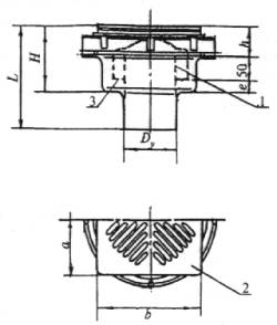 Предельные отклонения основных размеров чугунных трапов должны соответствовать указанным в ГОСТ 26645 для отливок 9-го класса точности, а пластмассовых - в ГОСТ 11710. 3.3 Условное обозначение трапа при заказе и в технической документации должно состоять из слова «Трап», обозначения типа трапа и настоящего стандарта. В обозначение пластмассового трапа должна быть добавлена буква «П». Примеры условных обозначений Чугунный трап с прямым отводом условным проходом 50 мм: Трап Т50 ГОСТ 1811-97 Трап с косым отводом условным проходом 100 мм, большой: Трап ТК100б ГОСТ 1811-97 Пластмассовый трап с вертикальным отводом условным проходом 100 мм: Трап ТВ100П ГОСТ 1811-97 1 - корпус; 2 - решетка; 3 - пробка Рисунок 1 - Трап с прямым (косым) отводом 1 - корпус трапа; 2 - решетка; 3 - стакан Рисунок 2 - Трап с вертикальным отводом 3.4 Форма корпуса трапа, а также форма и расположение отверстий решетки настоящим стандартом не регламентированы. 4 Технические требования4.2 Характеристики 4.2.5 Пробки следует изготавливать как формовые изделия из водостойких резин группы В средней твердости С. 4.2.7 Решетки трапов должны выдерживать сосредоточенную нагрузку, приложенную в центре решетки на площадь 15 см2 не менее 60 кг для трапов с условным проходом Dу 50 мм и на площадь 30 см2 - не менее 90 кг для трапов с условным проходом Dу 100 мм. 4.2.9 Наружные поверхности чугунных трапов должны иметь лакокрасочное покрытие, соответствующее условиям эксплуатации не ниже У2 по ГОСТ 9.104. 4.2.11 Чугунные трапы должны отливаться из серого чугуна марок СЧ 10 и СЧ 15 по ГОСТ 1412. Для изготовления пластмассовых трапов необходимо применять коррозионно-стойкие материалы, обеспечивающие выполнение требований настоящего стандарта. Материалы, рекомендуемые для изготовления пластмассовых трапов, указаны в приложении А. В местах удаления литника допускаются выступы не более 1 мм. 4.2.13 Пластмассовые детали трапа должны быть стойкими к воздействию внутренних напряжений. 4.2.14 Трапы должны изготавливаться в климатическом исполнении УХЛ категории размещения 4.2 по ГОСТ 15150. 4.3 Комплектность 4.3.1 В состав комплекта должны входить корпус, решетка, стакан (для вертикальных трапов), пробка (для трапов с прямым и косым отводами). 4.3.2 Трапы, отгружаемые потребителю в одной транспортной единице по одному сопроводительному документу, должны сопровождаться паспортом и инструкцией по эксплуатации. 4.3.3 В паспорте должны быть указаны: - наименование предприятия-изготовителя, его товарный знак и адрес; - условное обозначение трапа; - комплектность; - гарантия предприятия-изготовителя; - дата выпуска или отгрузки; - штамп ОТК. 4.3.4 Допускается совмещать паспорт с инструкцией по монтажу и эксплуатации. 4.4.1 На наружной поверхности трапа должны быть указаны: - товарный знак предприятия-изготовителя или его наименование; - месяц и год изготовления трапа. 4.4.2 Маркировка должна быть прочной, сохраняться в течение всего срока службы трапов. 4.4.3 Место и способ нанесения маркировки определяет предприятие-изготовитель. 4.4.4 Упакованные изделия должны иметь транспортную маркировку в соответствии с ГОСТ 14192 и содержать манипуляционные знаки: «Осторожно», «Хрупкое». 4.4.5 На каждое грузовое место должен крепиться ярлык из картона, фанеры или бумаги, покрытый пленкой, содержащий следующие данные: - наименование предприятия-изготовителя; - наименование изделия; - ном