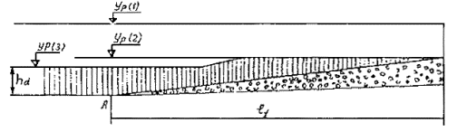 находится на глубине Hf + Рисунок 6.4 - Расчетные уровни воды в водоеме Ур(1) - уровень открытой воды; Ур(2) - уровень воды периода ледостава; Ур(3) - уровень воды в период вскрытия льда Ширина припая