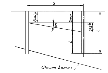 6.3.8 Ширина полосы наплесковых форм льда на поверхности откоса сооружения в осенне-зимний период до ледостава принимается равной ширине наката расчетных волн и определяется в соответствии с рекомендациями п. 1.14 формула (25) положения СНиП 2.06.04-82* [1]. 6.3.9 Ширина припая измеряется от уреза воды до линии