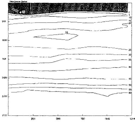 Если уклон дна в зоне обрушения больше 0,05, то считается, что имеет место только одно обрушение. 9.3. На глубине первого обрушения луча вычисляются следующие параметры: высота, период и длина волн пяти обеспеченностей в системе: 1, 5, 10, 30 и 50 %; высота нагона от энергетически эквивалентной волны; азимут подхода к линии обрушения, град.; высота и длина наката волны 1 % обеспеченности, м. 9.4. На глубине последнего обрушения луча вычисляются следующие параметры: высота, период и длина волн пяти обеспеченностей в системе: 1, 5, 10, 30 и 50 %; азимут подхода к линии обрушения. 9.5. Высота наката волн 1 % обеспеченности на берег определяется по формуле (25) из [1]: hrun,1 % = KrKpKbKspKrunh1%, где: Kr, Kp - коэффициенты шероховатости и проницаемости, определяемые по табл. 6 [1], и зависящие от относительной шероховатости (r/h1%) откоса; r - размер пляжеобразующего материала берегового откоса; h1% - высота волны 1 % обеспеченности в системе; Ksp - коэффициент, определяемый по табл. 7 [1] и зависящий от угла наклона откоса к горизонту и скорости ветра; Krun - коэффициент, зависящий от пологости и уклона откоса и определяемый по зависимостям, аппроксимирующим графики на рис. 10 [1]; kb - коэффициент, зависящий от угла подхода волн к берегу, и определяемый по табл. 9 [1]. Если требуется вычислить высоту наката заданной обеспеченности, то полученное значение hrun,1%, необходимо умножить на коэффициент Ki, определяемый по табл. 8 [1]. Длина наката волн на откос определяется по формуле: Ln = hrun/ykl, где ykl - уклон дна в зоне обрушения. Ниже приводится контрольный пример расчета для побережья Дагестана в районе г. Дербента (рисунок Ж.1). Рассчитывалось 5 волновых лучей; выходные табличные данные приведены для первых двух лучей. КОНТРОЛЬНЫЙ ПРИМЕР РАСЧЕТА TW_SNIP Программа расчета рефракции, трансформации и обрушения волн на произвольном рельефе дна водоема, заданном на прямоугольной координатной сетке (по методике СНиП) Версия 2.0, 1994 г. Разработчик: НИЦ «Морские берега» Район исследований: Дагестан, Дербент Азимут линии берега (оси OX): 340.0 Средние элементы волн на глубокой воде Азимут, град. Высота, м Длина, м Период, с 75,00 2,40 78,10 7,00 Результаты расчета трансформации и обрушения волн Волновой луч номер 1 Элементы волн по линии первого обрушения