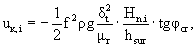 где: dt - толщина турбулентного погранслоя, м; mt - коэффициент турбулентной вязкости, кг/м×с; Hn,i - высота волнового нагона на заданной глубине (di), учитывающей этот нагон; f2 - безразмерный коэффициент, равный: