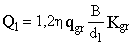 при укладке в насыпи: Q1=1,2hggrKemB; (н/м). (24) где h - принимается в зависимости от степени уплотнения засыпки в пределах от 0,85 до 0,95; Кgr - определяется по табл. 6. Таблица 6 Коэффициент вертикального давления грунта, Kgr