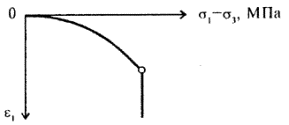 В случае увеличения объема образца εv принимают со знаком плюс. 5.3.7.2 При определении характеристик прочности по вычисленным значениям строят график зависимости ε1 = f(σ1 - σ3) для испытаний, проведенных при различных значениях σ3 (приложение Ж). На графиках определяют значения (σ1 - σ3)р, соответствующие моменту разрушения образца грунта (точка перегиба графика) или относительной вертикальной деформации образца ε1 = 0,15. 5.3.7.3 Сопротивление недренированному сдвигу си, МПа, определяют по результатам неконсолидированно-недренированного испытания по формуле