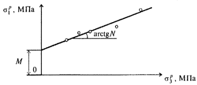 τi и σi необходимо заменить на N, М, Примечания 1 При измерении давления в поровой жидкости σ1 и σ3 заменяют на σ¢1 и σ¢3, вычисляемые по формулам: σ¢1 = σ1 - и; (5.18) σ¢3 = σ3 - и, (5.19) где и - давление и поровой жидкости, МПа. 2 Для оценки разброса экспериментальных данных и выявления ошибок испытаний перед вычислением tgj и с строят график зависимости σ1 = f(σ3) при разрушении образцов (приложение Ж). 5.3.7.5 При определении характеристик деформируемости по вычисленным значениям строят графики зависимости ε1 = f(σ1) и εv = f(σ1) (приложение Ж). На графиках принимают линейную аппроксимацию участков для заданных программой испытаний диапазонов напряжений. 5.3.7.6 Модуль деформации Е, МПа, и коэффициент поперечной деформации v определяют при испытаниях (или этапах испытаний), проведенных при постоянном значении всесторонних напряжений σ3 (Dσ3 = 0), и вычисляют по формулам: