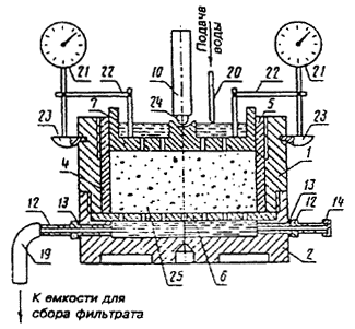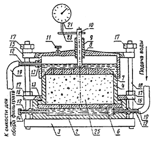 - для грунта нарушенного сложения - рабочее кольцо прибора заполняют заранее подготовленным грунтом заданного состава и влажности, добиваясь требуемой плотности грунта, после чего грунт замораживают. Условия охлаждения образца при замораживании определяются заданием. При отсутствии данных образец грунта промораживают в условиях всестороннего охлаждения;