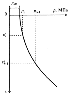 где ei и ei+1 - коэффициенты пористости, соответствующие давлениям рi и pi+1. 5.4.7.5 Модуль деформации Е, МПа, в интервале давлений рi и pi+1 вычисляют с точностью 0,1 МПа по формулам: