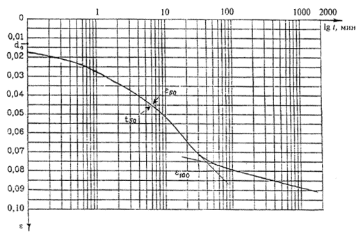 где Dhi - разность продольных деформаций образца грунта в конце и начале периода деформирования грунта с постоянной скоростью на i-й ступени нагружения, мм; Dti - продолжительность периода деформирования образца грунта с постоянной скоростью на i-й ступени нагружения, ч; - по вычисленным значениям