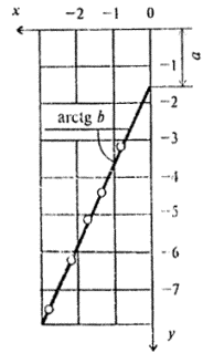 а - в масштабе чертежа равен отрезку, отсекаемому на оси ординат (у) прямой наилучшего приближения к экспериментальным точкам;