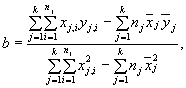 Способом наименьших квадратов параметры aj и b определяют по формулам: