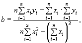 Способом наименьших квадратов параметры а и b определяют по формулам: