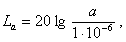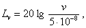 v - среднее квадратическое значение виброскорости, м/с; 5·10-8 - опорное значение виброскорости, м/с. Соотношение между логарифмическими уровнями виброскорости в дБ и ее значениями в м/с приведены в приложении 2. 5.3.2. Логарифмические уровни виброускорения (La), в дБ, определяют по формуле: