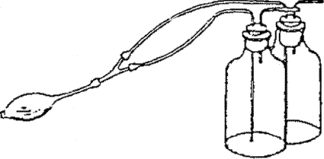 3.2.11. Скорость движения воздуха в помещениях определяется в тех же точках, что температура и относительная влажность воздуха. Измерения в разных точках рекомендуется производить синхронно или с минимальным разрывом во времени. Измерения производятся, как правило, в летний и зимний (при детальных обследованиях) и в переходные периоды года. В каждый период выполняется не менее трех циклов измерений. 3.2.12. Измерения скоростей движения воздуха выполняются крыльчатыми, чашечными анемометрами (рис. 3.6) или кататермометрами (рис. 3.7). Продолжительность включения анемометра при выполнении единичного замера 60 сек. Скорость движения воздуха в закрытых помещениях или в квартирах не может измеряться анемометром из-за недостаточной его чувствительности и поэтому измеряется кататермометрами, представляющими собой спиртовой термометр с цилиндрическим резервуаром поверхностью в 22,6 см2 и трубкой длиной 20 см, верхний конец которой переходит в небольшой резервуар (см. рис. 3.7). Принцип измерения скорости движения воздуха описывается в паспорте и в инструкции, прилагаемой к кататермометру. При наличии лучистой энергии кататермометр должен быть защищен от ее влияния экраном, в противном случае показания кататермометра будут неточны. 3.2.13. Направления воздушных потоков при малой их интенсивности определяются фумигатором (рис. 3.8). Фумигатор состоит из двух склянок, закрытых резиновыми пробками, через которые проходят две стеклянных трубки, одна из которых заканчивается у дна, а другая - у нижнего края пробки. Наружные концы коротких трубок устанавливаются рядом. В одну из склянок наливают нашатырный спирт, в другую - соляную кислоту. Сжимая слегка грушу, заставляют одновременно выходить через трубки из одной склянки пары нашатырного спирта, а из другой - пары соляной кислоты. Сразу же образуется густое облако NH4Cl. Его движение и указывает направление потока воздуха. 3.2.14. При сравнительно больших скоростях воздушных потоков направление и скорость ветра определяют вымпелом и чашечным анемометром. Вымпел представляет собой шест, к верхнему концу которого прикрепляется полоса легкой материи длиной 0,5 м и шириной 3-4 см. 3.2.15. Результаты измерений параметров воздушной среды сопоставляются с нормами температуры, относительной влажности и скорости движения воздуха в рабочей зоне, согласно требованиям санитарных норм [II-98, II-99], и на этой основе дается оценка параметров производственной среды. 3.2.16. Натурные обследования параметров внешнего климата (внешней среды) охватывают, как правило, следующие виды работ, выполняемых вблизи здания (на расстоянии не более 20 м), вне зон аэродинамической тени строений, на высоте 1,5 м от земной поверхности или не менее 2 м над наиболее высоким участком кровли: измерения температур и влажности воздуха; скоростей и направления ветра; наблюдения за атмосферными процессами (облачность, осадки и т.д.); определение состава, свойств и концентрации содержащейся в воздухе пыли. В промышленных зонах или на промплощадках следует дополнительно обследовать наличие в атмосфере окружающего воздуха вредных для человека и агрессивных к материалам строительных конструкций газов и химических веществ. Измерения, связанные с атмосферными осадками, следует производить по методикам, изложенным в литературе по проведению метеоролог