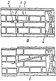 7. ОБСЛЕДОВАНИЕ КАМЕННЫХ И АРМОКАМЕННЫХ КОНСТРУКЦИЙ7.1. Особенности работы и разрушения конструкций7.1.1. При обследовании и оценке технического состояния каменных и армокаменных конструкций необходимо учитывать особенности их работы и разрушения, обусловленные их структурой. Каменная кладка является неоднородным упругопластическим телом, состоящим из камней и швов, заполненных раствором. Этим обуславливаются следующие особенности ее работы: при сжатии кладки усилие передается неравномерно вследствие местных неровностей и неодинаковой плотности отдельных участков затвердевшего раствора. В результате камни подвергаются не только сжатию, но также изгибу и срезу. Характер разрушения кладки и степень влияния многочисленных факторов на ее прочность объясняется особенностями ее напряженного состояния при сжатии. Разрушение обычной кирпичной кладки при сжатии начинается с появления отдельных вертикальных трещин, как правило, над и под вертикальными швами, что объясняется явлением изгиба и среза камня, а также концентрацией растягивающих напряжений над этими швами. 7.1.2. При обследовании каменных и армокаменных конструкций необходимо в первую очередь выделить несущие элементы, на состояние которых следует обратить особое внимание. Первые трещины в кирпичной кладке появляются при нагрузках меньших, чем разрушающие, причем обычно отношение т=Ncrc/Nu тем меньше, чем слабее раствор (Ncrc - нагрузка, соответствующая моменту появления трещин, Nu - разрушающая нагрузка). Так, например, для кладок на растворе марок: 50 и выше т=0,7-0,8; 10 и 25 т=0,6-0,7; 2 и 4 т=0,4-0,6. Момент появления первых трещин зависит от качества выполнения горизонтальных швов и плотности применяемого раствора. В кладках из крупноразмерных изделий (высокопустотных керамических камней, камней из ячеистого бетона) наступает хрупкое разрушение, первые трещины появляются при нагрузках 0,85-1 от разрушающей. 7.1.3. Важной причиной, снижающей прочность и упругость каменной кладки, является неравномерная плотность и усадка раствора. Частичное заполнение раствором вертикальных швов не приводит к снижению прочности кладки, однако уменьшает ее трещиностойкость и монолитность. Вертикальные швы и отверстия в пустотелых камнях нарушают монолитность кладки и вызывают концентрацию растягивающих и сдвигающих напряжений у верхнего и нижнего концов щелей. Поэтому прочность кладки из пустотелых камней снижается на 15-20 % (за исключением дырчатого кирпича и керамических камней с щелевидными пустотами). 7.1.4. Среди возможных причин возникновения дефектов следует выделить механические, динамические, коррозионные, температурные, влажностные воздействия, а также дефекты, обусловленные неравномерностью деформаций оснований. Последние могут быть вызваны как разностью степени загружения соседних участков стен (например, торцевых - самонесущих и продольных - несущих), так и разностью, технологических условий на смежных участках, а также следствием вымывания грунта из-под фундамента грунтовыми водами, замачивания просадочных грунтов и др. 7.1.5. Важным этапом обследования каменных конструкции является установление деформативно-прочностных характеристик кладки. Обнаруженные в несущих каменных конструкциях трещины следует оценивать с позиции работы кладки над нагрузкой при сжатии. Различают 
