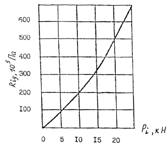 где тg - поправочный коэффициент, учитывающий крупность заполнителя, принимаемый равным: при максимальной крупности заполнителя 20 мм и менее - 1, при крупности более 20 до 40 мм - 1,1; Riy - условная прочность бетона, определяемая по графику (рис. 6.17) по среднему значению косвенного показателя Р