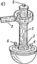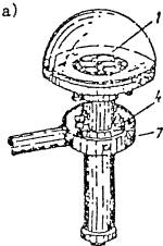 Рис. 10.2. Термометр ЭТП-М Рис. 10.3. Пиранометр 10.3. Измерение солнечной радиации10.3.1. Цель наблюдения над солнечной радиацией заключается в определении солнечной лучистой энергии, падающей на наружные ограждения и через светопроемы проникающей внутрь помещений. 10.3.2. Измерение интенсивности солнечной радиации производится пиранометром Янишевского (рис. 10.3) в комплекте с гальванометром или потенциометром. При замерах суммарной солнечной радиации пиранометр устанавливают без теневого экрана, при замерах же рассеянной радиации с теневым экраном. Прямая солнечная радиация вычисляется как разность между суммарной и рассеянной радиацией. При определении интенсивности падающей солнечной радиации на ограждение пиранометр устанавливают на него так, чтобы воспринимаемая поверхность прибора была строго параллельна поверхности ограждения. При отсутствии автоматической записи радиации замеры следует производить через 30 мин в промежутке между восходом и заходом солнца. 10.3.3. Радиация, падающая на поверхность ограждения, полностью не поглощается. В зависимости от фактуры и окраски ограждения некоторая часть лучей отражается. Отношение отраженной радиации к падающей, выраженное в процентах, называется альбедо поверхности и измеряется альбедометром П.К. Калитина (рис. 10.4) в комплекте с гальванометром или потенциометром. При радиационных наблюдениях альбедометр устанавливают таким образом, чтобы рабочая поверхность его была параллельна поверхности ограждения, альбедо которого определяется. Методика измерений сводится к последовательному измерению величины падающей радиации Jпад. и отраженной радиации Jотр. При измерении падающей радиации воспринимающая поверхность альбедометра должна быть установлена на поверхности ограждения или по возможности на наименьшем расстоянии, а при измерении отраженной радиации на расстоянии 0,5 м от поверхности ограждения. После замеров падающей радиации альбедометр поворачивают на 180° и производят замер отраженной радиации. Замеры повторяют 3-5 раз с интервалом 5 мин, и по ним определяют среднее значение альбедо поверхности. Рис. 10.4. Альбедометр а - положение приемником вверх; б – то же, вниз; 1 - головка пиранометра; 2 - втулка; 3 - трубка; 4 - муфта; 5 - стержень, по которому скользит груз; 6 - клеммы; 7 - карданный подвес; 8 - рукоятка Для большей точности наблюдения следует проводить при ясном небе и при интенсивном солнечном облучении ограждения. 10.3.4. Определение влияния инсоляции на тепловой режим помещения производится путем сравнения показаний измерений температуры воздуха обычным ртутным термометром и шаровым термометром (глоботермометром). Последний представляет собой обычный термометр, шарик которого заключен в полый, зачерненный снаружи медный шар диаметром 150 мм и находится в центре последнего. Шкала термометра выходит из шара наружу. Влияние инсоляции на зачерненную поверхность приводит к тому, что температура внутри шара отличается от температуры воздуха, замеренной обычным термометром, который представляет собой средневзвешенную радиационную температуру. 10.4. Измерение тепловых потоков10.4.1. В практике теплотехнических исследований ограждающих конструкций измерения величин тепловых потоков, проходящих через них, позволяет определить теплозащитные свойства обследуемых ограждени