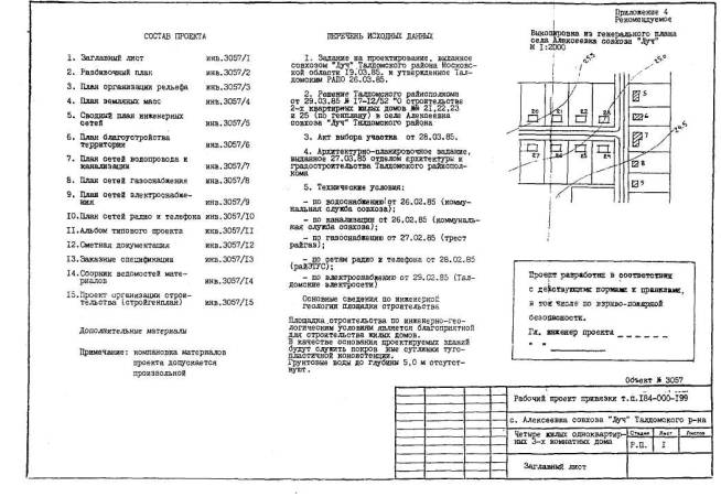 Перечень объектов, относящихся к категории простейших (приложение 1), для применения в области, крае, автономной республике может быть дополнен или изменен по решению комиссии из представителей областных, краевых, автономных республик архитектурно-градостроительных органов, агропромышленных комитетов, строительных и проектных организаций - по согласованию с Госстроем РСФСР, Госагропромом РСФСР или Госагропромом Нечерноземной зоны РСФСР. 1.3. Подготовка исходных данных, а также согласование и утверждение проектно-сметной документации производится в соответствии с Инструкцией ВСН 113-87 и требованиями архитектурно-планировочного задания, выданного местными органами архитектуры и градостроительства. 1.4. Привязка типовых проектов простейших зданий и сооружений ведется на основе утвержденных генеральных планов, проектов детальной планировки и проектов застройки сельских населенных пунктов. При их отсутствии проектирование осуществляется по схеме размещения первоочередного строительства, составленной в соответствии с Правилами застройки сельских населенных пунктов РСФСР (п.п. 19, 20 и 21). Выкопировка из указанных выше документов, согласованная с отделом архитектуры и градостроительства районного Совета народных депутатов, представляется заказчиком в составе исходных данных. 1.5. Привязка типовых проектов к местным конкретным условиям производится проектными организациями, в том числе хозрасчетными проектно-производственными архитектурно-планировочными бюро при архитектурно-градостроительных органах исполкомов местных советов, организациями и предприятиями агропромышленного комплекса, проектно-строительными объединениями, а также специальными кооперативами. 1.6. Жадный объект строительства (группа объектов) должен иметь привязанный к местным конкретным условиям площадки (с указанием района, совхоза, колхоза, населенного пункта, улицы, квартала, номера дома, сооружения по генплану и т.п.) рабочий проект с обязательными подписями должностных лиц, которые несут всю полноту ответственности за привязанный типовой проект данного конкретного объекта. Запрещается пользоваться безадресной привязкой типовых проектов. 1.7. Контроль, за обоснованным размещением новых объектов строительства, нанесение на планировочную документацию всех привязок и сопутствующих решений по инженерным сетям и благоустройству осуществляют группы дежурных генпланов при архитектурно-градостроительных органах местных Советов. 1.8. Инженерные изыскания для привязки простейших зданий и сооружений производятся в соответствии с приложениями 2 и 3 настоящей Инструкции. 1.9. Для привязки многократно применяемых типовых проектов следует применять предварительно подготовленные варианты, выполненные в соответствии с разделом 2 настоящей Инструкции и учитывающие особенности строительной базы, данные по инженерной геологии и транспортные схемы перевозок местных строительных материалов. 1.10. Состав проектно-сметной документации, выдаваемой заказчику при предварительно подготовленных вариантах привязки, определяется разделом 3 настоящей Инструкции. Этим же разделом определяется состав проектно-сметной документации и при привязке не многократно применяемых типовых проектов простейших зданий и сооружений, для которых отсутствовал этап по